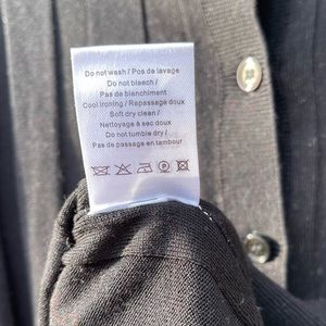 The cardigan is in excellent condition, and the ribbed fabric is quite flexible. Please be aware that it doesn't have a main label.