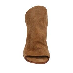 suede effect, no appliqués, solid color, leather lining, elasticized straps, square toeline, square heel, leather sole, contains non-textile parts of animal origin, covered heel