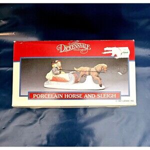 Lemax Dickensvale Christmas Village Porcelain Horse & Sleigh 1990 In Box EUC!