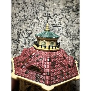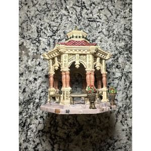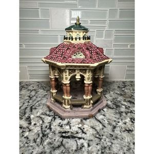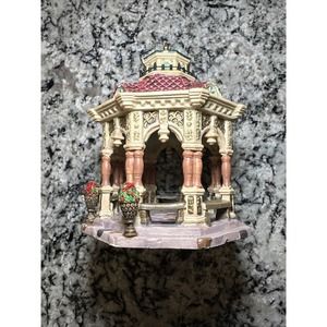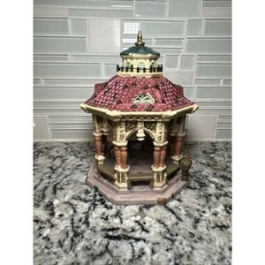 This beautiful Lemax Gilded Gazebo from the 2005 collection is perfect for your Christmas Village display. It adds a touch of elegance and charm to any scene. The intricate details of the gazebo make it a collector's item and perfect for those who love to create unique and beautiful displays. It is a retired piece, making it even more special and sought-after by collectors. The gazebo is in great shape and ready to be displayed.