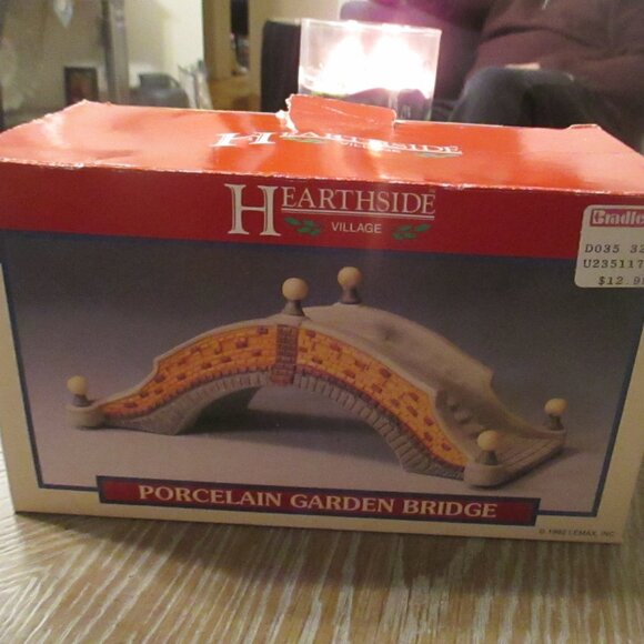 HELLO UP FOR SALE IS A PRETTY IN GREAT CONDITION VINTAGE LEMAX HEARTHSIDE VILLAGE PROCELAIN HEAVY WEIGHT GARDEN BRIDGE STRUCTURE WITH BALLS ON THE ENDS. MEASURES 7 INCHES LONG. NO FLAWS NOTICED. PLEASE LET ME KNOW IF YOU HAVE ANY QUESTIONS :)