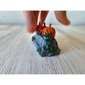 Lemax hear speak see no evil pumpkin tombstone Halloween decor accessory