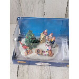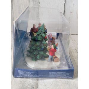 Lemax lighting the tree 2010 Village accessories snow light up Xmas