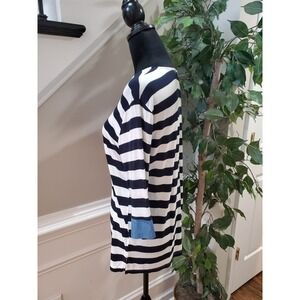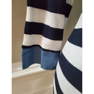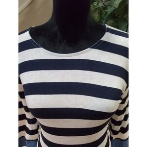 Lemite Women's White & Blue Striped Polyester Round Neck Long Sleeve Blouse L