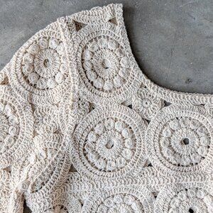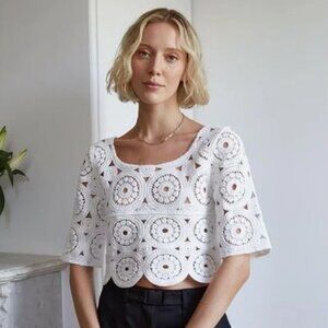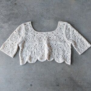 Lemiu for Pixie Market Ivory Scalloped Crochet Knit Crop Top