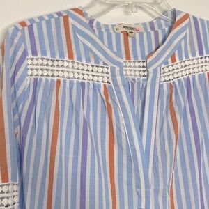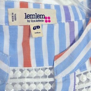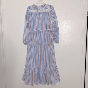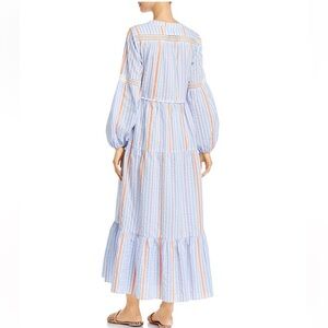 Lemlem Bahiri Blue Striped Long Sleeve Peasant Maxi Dress Size Medium