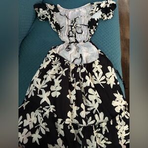 Elegant backless dress with floral pattern. Perfect for summer outings. Lightweight and stylish.