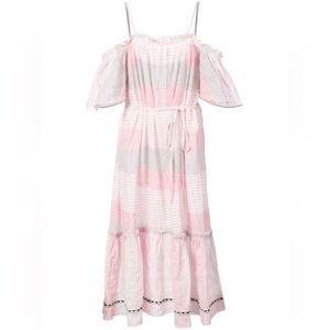 Lemlem Dera Blue White Off The Shoulder Flutter Sleeve Midi Dress size small