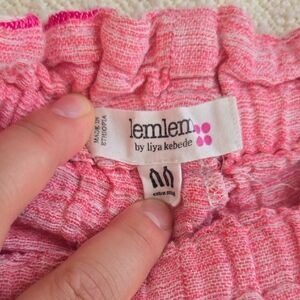 Lemlem High Waist Pink and Yellow Patterned Shorts Boho Fringe Xs