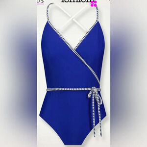 Inspired by the elegance and timelessness of ballet dancers, the fully lined ballet one piece swimsuit offers a flattering surplice neckline with removable pads. The suit is adorned with a crisscross belt that wraps around the waist twice to be tiedÊ in the front to highlight the waistline.