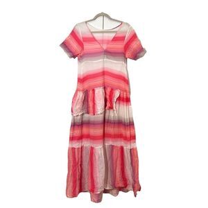 Lemlem Maxi Dress Size Small Tiered Beachy Boho Resort Short Sleeve