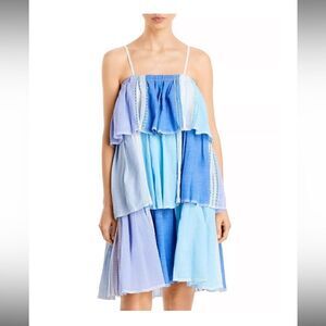 Lemlem Womens Esthal Colorblock Short Dress Swim Cover-up Blue XS $495, swim New