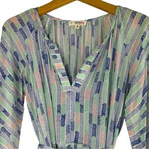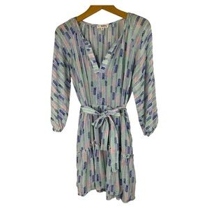 Lemlem by Liya Kebede Gigi Sweepy Herringbone Belted Silk Print Mini Dress Large