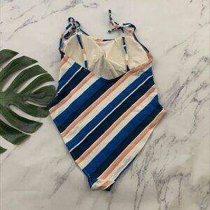 Lemlem x H&M Womens One Piece Swimsuit Size L Blue Pink Stripe High Leg Ties