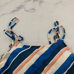 Lemlem x H&M women's blue and pink striped tie trim high leg one piece swimsuit, size L. It is free from any rips or stains.