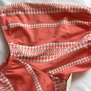 Lemlem Pouf top Featuring delicate white Tibeb bands on a orange , gold & white silhouette, the Nunu line is a chic and modern collection.