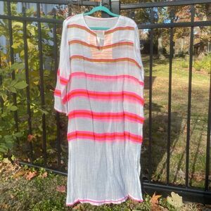 Gorgeous lemlem Walsh gauzy kaftan. Never been worn, with tags attached. Super fun neon colors. Very lightweight and comfy, perfect for summer at the beach or pool! Small hole on lower front side, very delicate material. Made in Ethiopia.