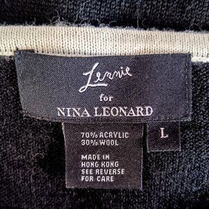 Lemmie for Nina Leonard Black Wool Ivory Trim Pullover Sweater