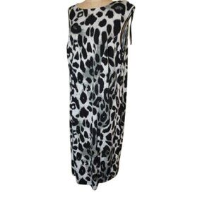 This stunning leopard print dress by Nina Leonard is perfect for any occasion. Made with a slinky, stretchy material, it flatters plus sizes effortlessly. New with tags, this dress is a wardrobe must-have. Scoop neckline, sleeveless, slinky stretchy leopard print fabric- underarm zipper - great classic style