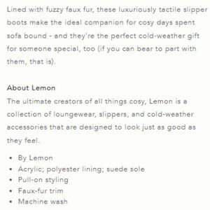 Man Made Upper / Round Toe / Super Soft Faux Fur Lining / Soft Suede Outsole.