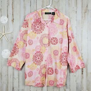 Lemon Grass Button Down Shirt Pink Red Patterned Size 1X