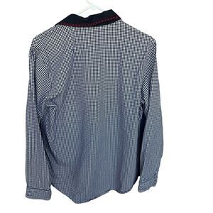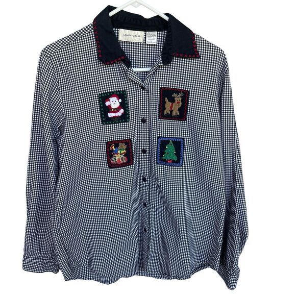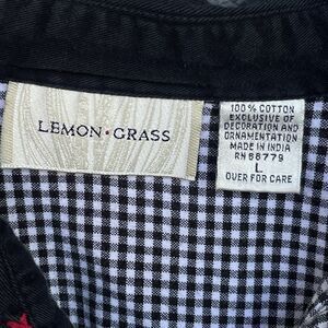 Lemon Grass Button Up Shirt Womens Large Black White Gingham Holiday Christmas