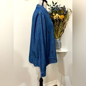 Lemon Grass Denim multicolor Embroidered denim Style Button down Top Size Large