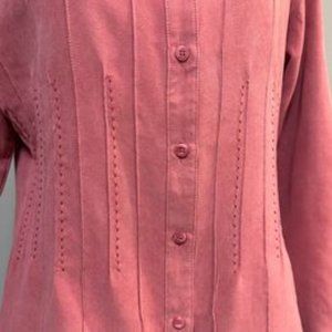 Lemon Grass Fields medium blush pink faux suede long sleeve blouse