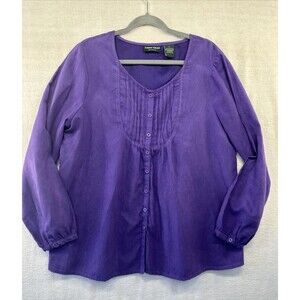 Lemon Grass Ladies XL Button Down Deep Purple Suede Tunic Blouse Long Sleeved