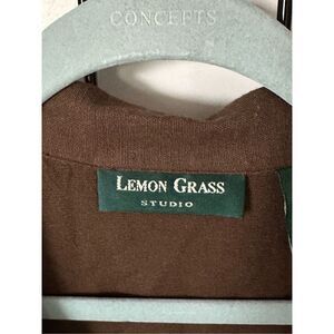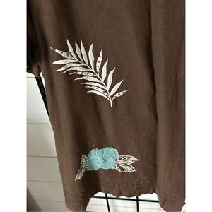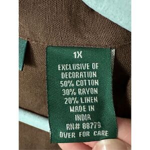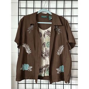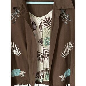 Lemon Grass Womens 1X Brown Linen Blend Floral Embroidered Short Sleeve Layered