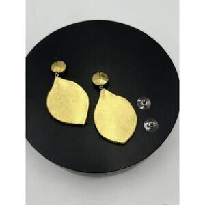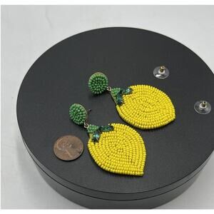 Lemon Hand Made Yellow Green Seed Beads Dangle Pierced Green Rhinestone Earrings