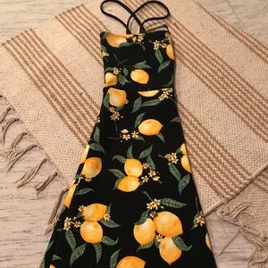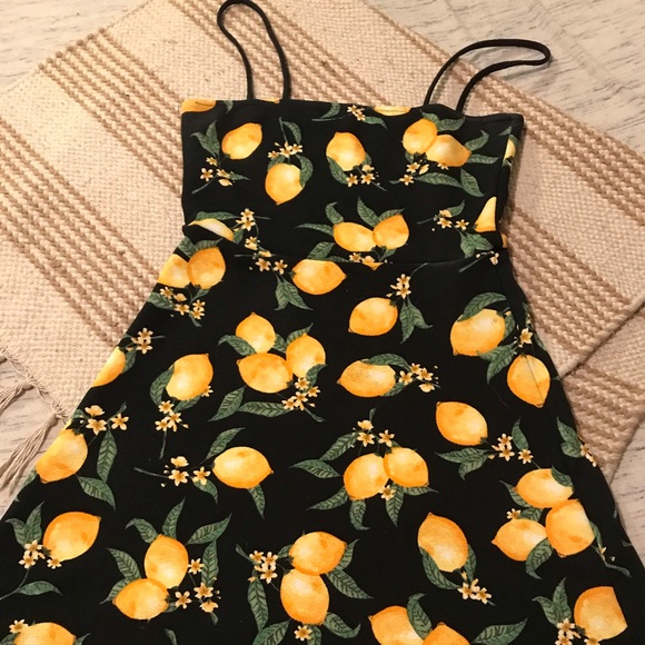 Cute little lemon dress, size small. Tags removed prior to my purchase. Brand is H&M. No flaws, just a little too mini for me.
