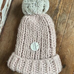 Lemon Pink Chunky Hand Knit Pom Beanie