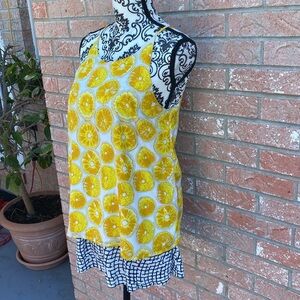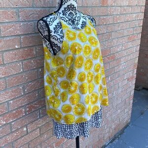 Lemon tank top with blue and white accent underneath lemon over layer