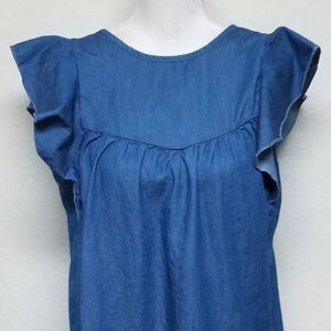 Lemon Tree Blue Chambray Flutter Sleeve Dress