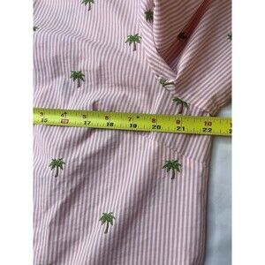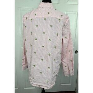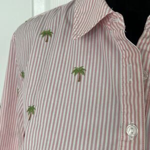 Lemon Way Shirt Womens Large Pink Striped Button Up Palm Trees Embroidery Preppy