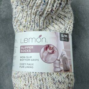 Lemon Womens Ribbed Slipper Socks S/M Non-Slip Faux Fur Lining a1516