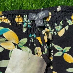 Chic and stylish black crop top with vibrant floral patterns. Perfect for a casual day out or a night on the town.