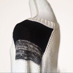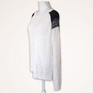 Oversized heavy waffle knit sweater with black and gray shoulder detail. Perfect for coming season