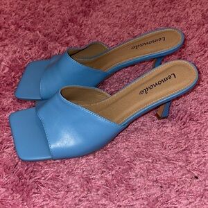 Never Worn. Lemonade Blue Square Toe Heels. No Flaws.