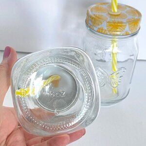 This set of two Simple Homemade Goodness 16 oz glasses features detailed butterfly and embossed text designs. Yellow orange design screw-on metal lids and sturdy reusable straws combine style and function.