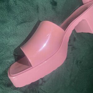 Brand new, never worn (only tried on on carpet) Size 8 Women's slip-on "rubber-like" (I am not aware of the actual material) sandals with chunky block heels purchased on Dolls Kill.