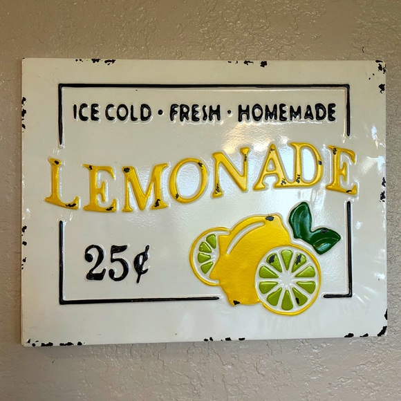 Metal Lemonade π Sign. 14 1/4β x 18 1/2β. Brand New**Free Gift With This Purchase**