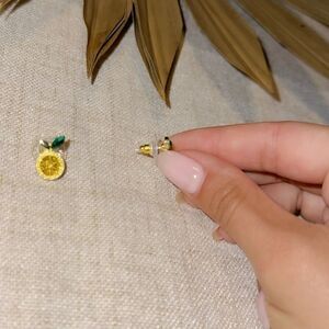 Rhinestone decor lemon stud earrings in gold tone hardware