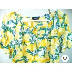 Lemons Summer Short Sleeve Flutter Ruffle Sleeve Top by TACERA
