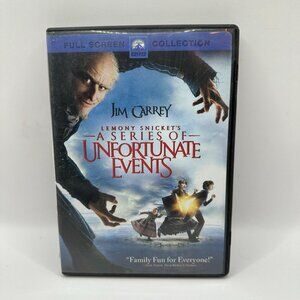 This 2004 full-screen edition of "Lemony Snicket's A Series of Unfortunate Events," starring Jim Carrey, is a dark comedy adventure about three clever orphans and their misadventures with the villainous Count Olaf. Released by Paramount Pictures, the DVD is in good pre-owned condition.
