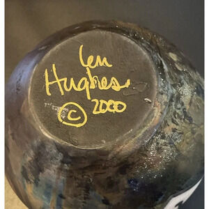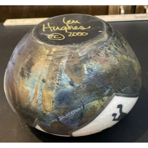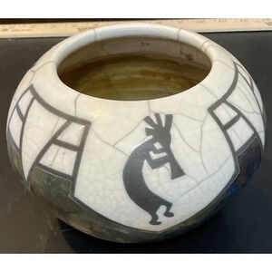 Len Hughes Studio 400 West Raku Fired Pottery Vessel Southwest Kokopelli Signed