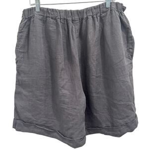 Len Ok Gray Linen Elastic Waist Shorts XXXL Relaxed Fit Coastal Lagenlook Boho