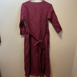 Len.OK Linen Long Dress Wild Orchid Purple Lagenlook Belted Waist Midi, Size S