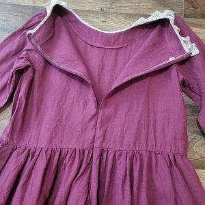 Len.Ok 100% Linen Purple 3/4 Sleeve Collared Lace Detail Knee Length Dress. Great condition. No size tag, but looks like oversize M. Zipper in back and has pockets. Measurements in photos